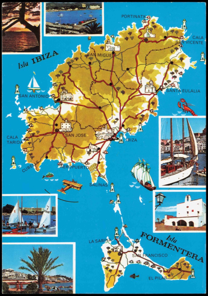 Postcart: Landkarte Übersichtskarte (Map) Insel Ibiza Balearen