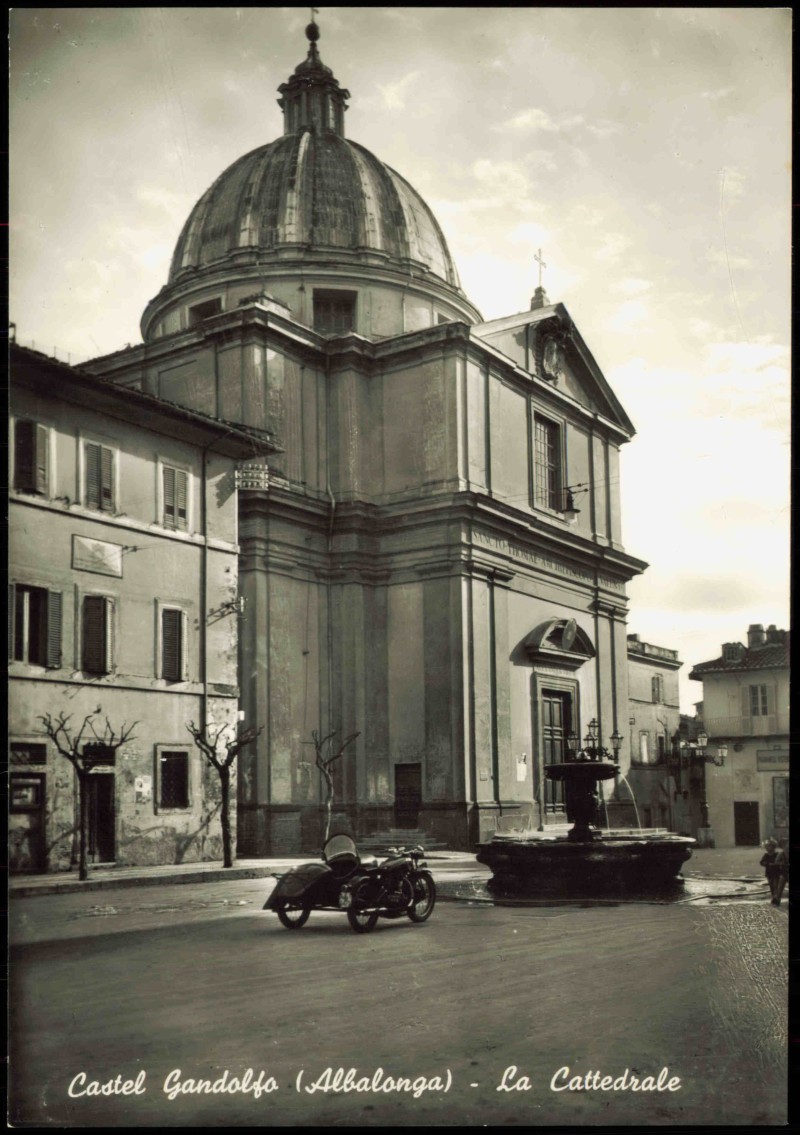 Postcart: Kathedrale Motorrad mit Sozius - Castel Gandolfo