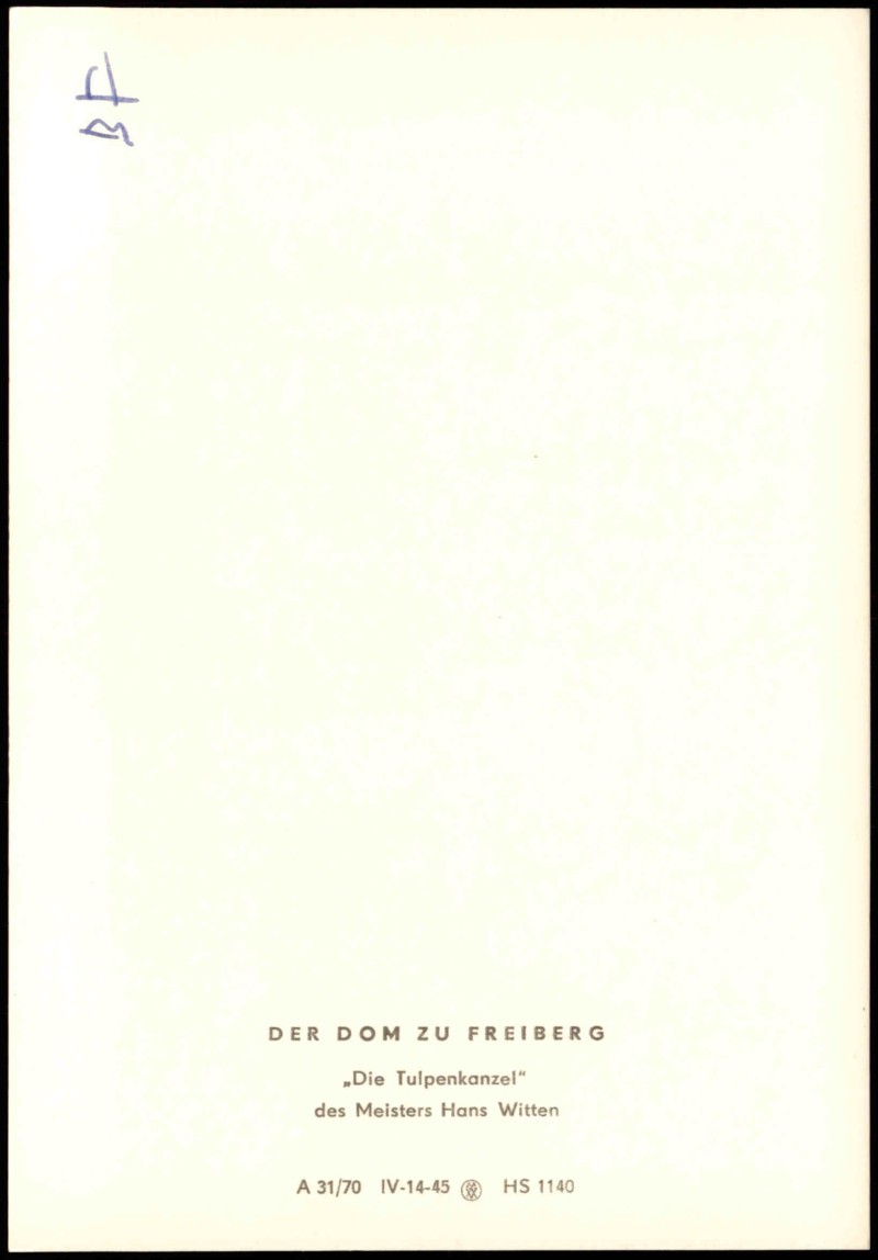 vintage Postcard from 1970: Dom St. Marien Die Tulpenkanzel des Meisters Hans Witten:: Freiberg (Sachsen) Address side