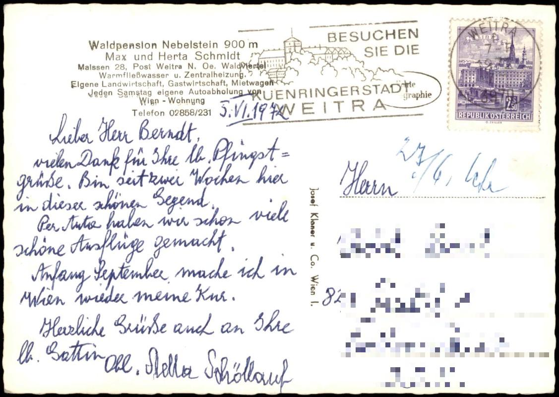 Postcart: Waldpension Nebellstein Waldviertel - Weitra