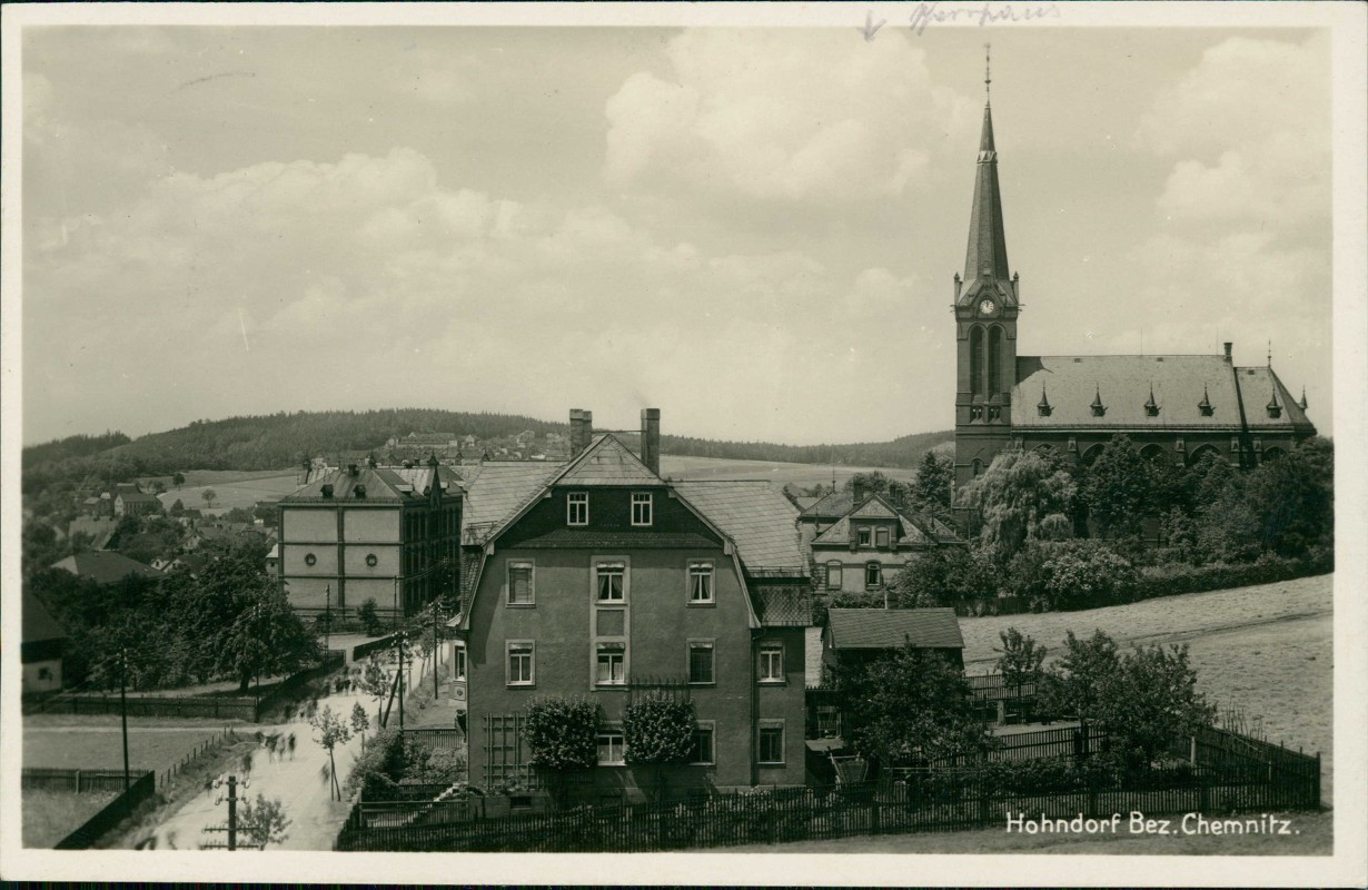 Postcart: Straßenpartie Kirche - Hohndorf