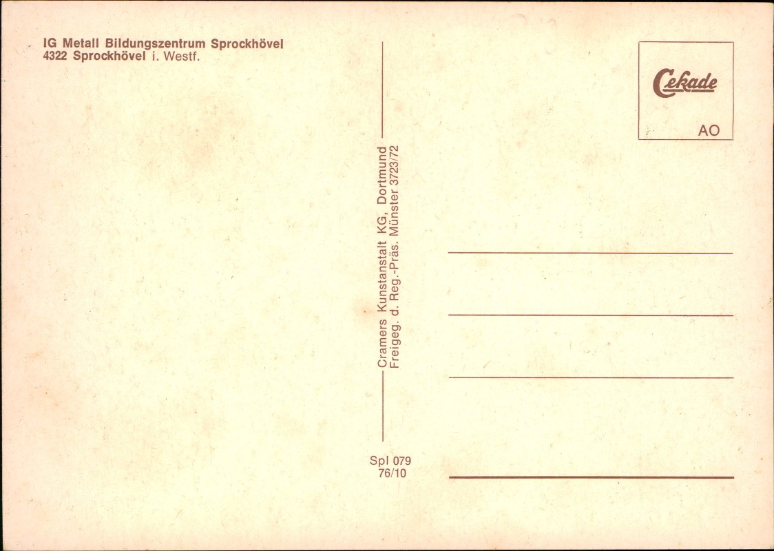 Postcart: Luftbild Fliegeraufnahme IG Metall Bildungszentrum - Sprockhövel