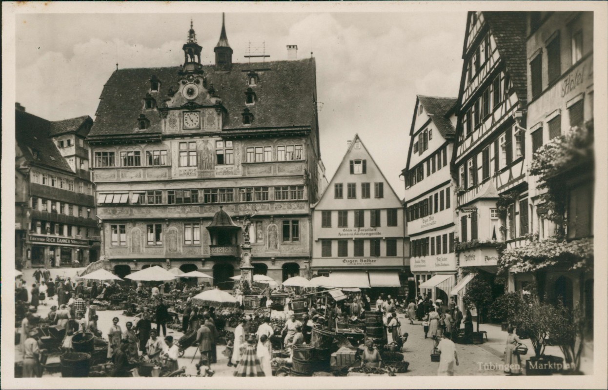 Postcart: Marktplatz Marktstände Fotokarte - Tübingen