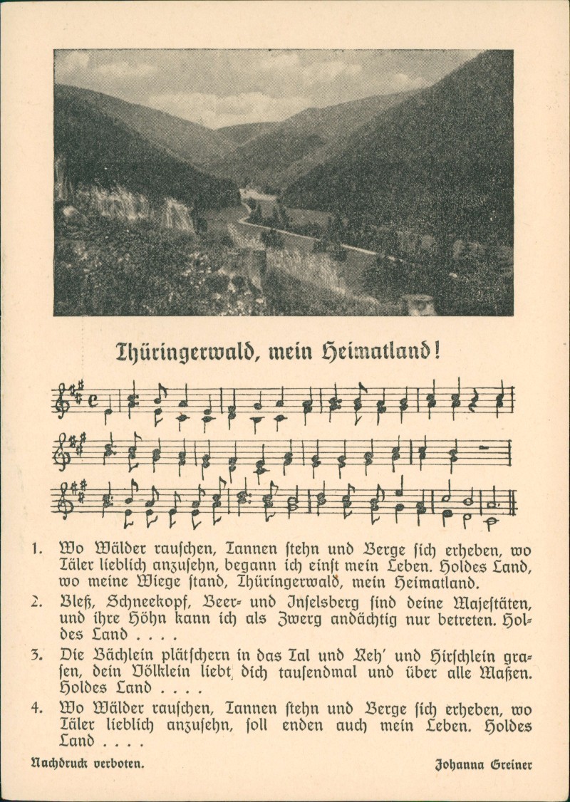 Postcart: Liedkarte Thüringerwald, mein Heimatland!