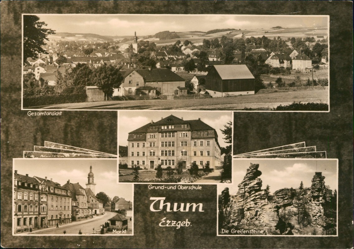 Photo Card: DDR Mehrbildkarte Ortsansichten u.a. Grund- u. Oberschule zur DDR-Zeit - Thum