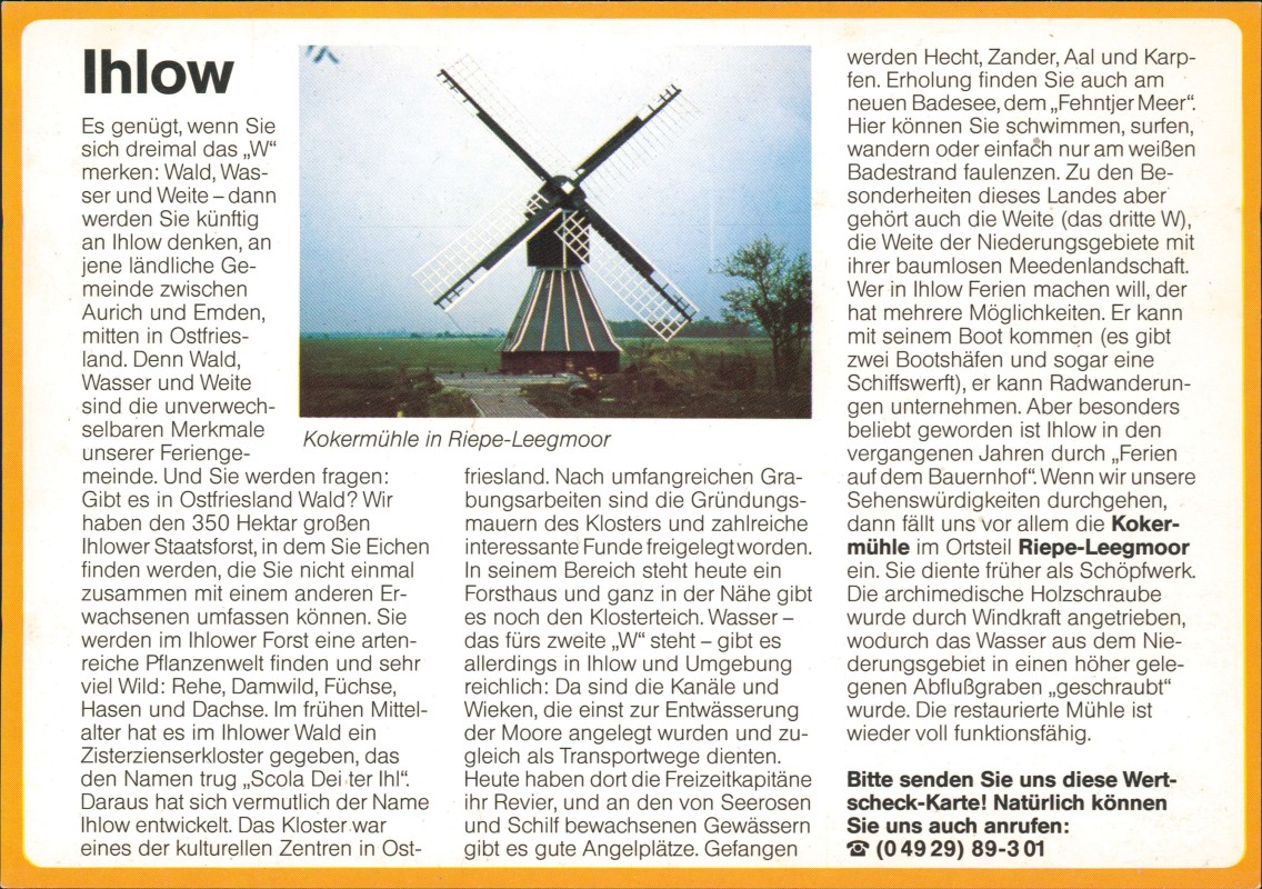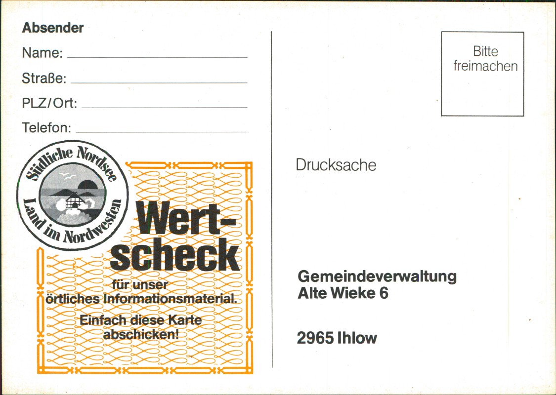 - Kokermühle in Riepe-Leegmoor Drucksache Antwortkarte "Wertscheck"