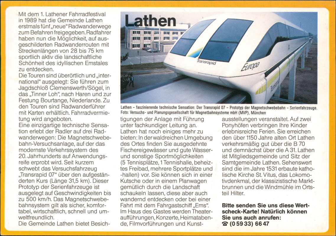 Photo Card: Transrapid-Magnetschwebebahn Drucksache Antwortkarte "Wertscheck" - Dörpen
