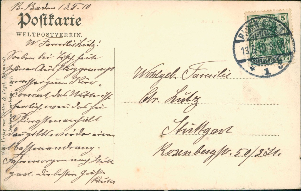 Postcart: Blick vom neuen Schloß - Baden-Baden
