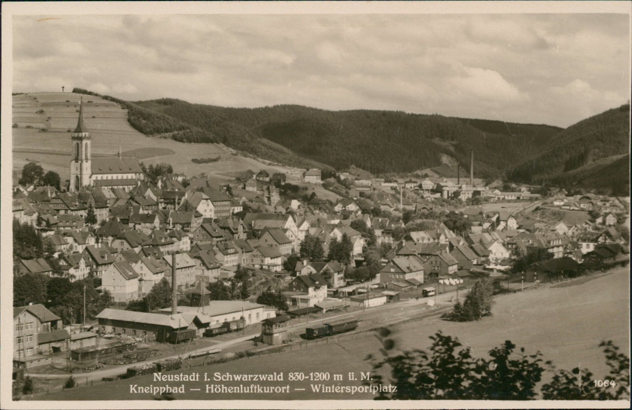 Postcart: Stadt Fabrik Bahnhof Fotokarte - Titisee-Neustadt