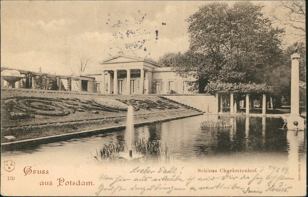 Postcart: Schloss Charlottenhof Fontaine - Potsdam