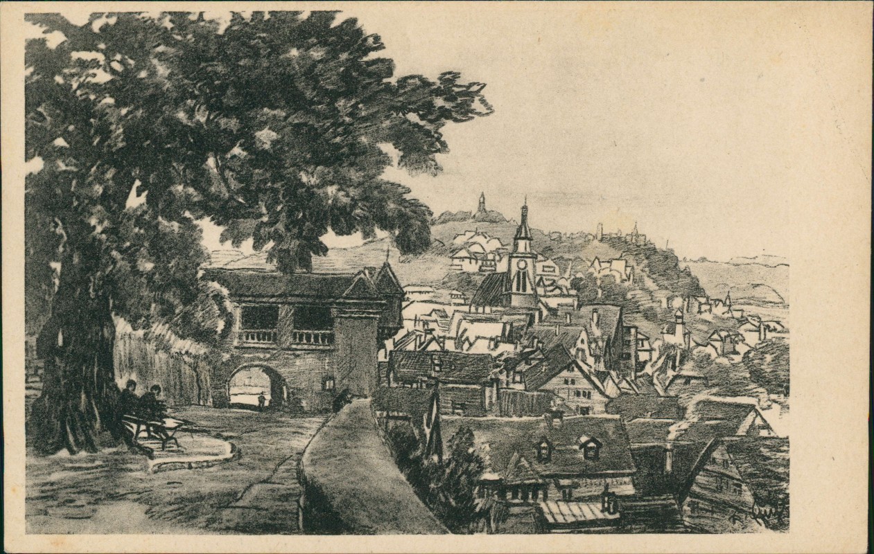- Blick auf die Stadt vom Schloßhof aus Künstlerkarte