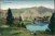 Postcart: Panorama-Ansicht, Personen auf Wiese vor Teich - Oberammergau