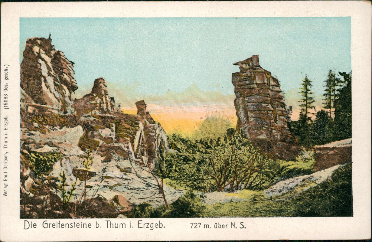 Postcart: Greifensteine Sonnenaufgang - Ehrenfriedersdorf
