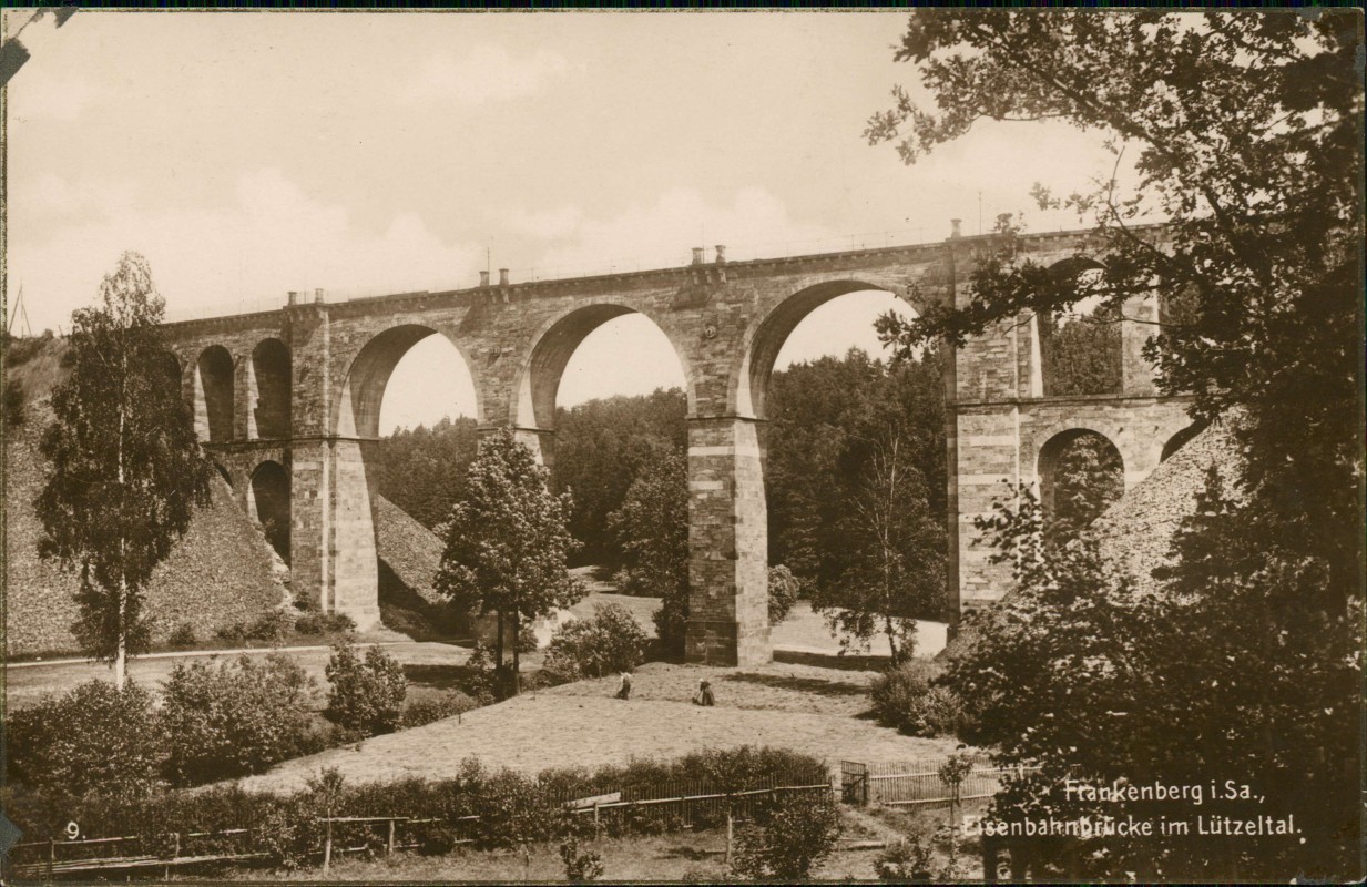Postcart: Eisenbahnbrucke im Lützeltal. - Frankenberg (Sachsen)
