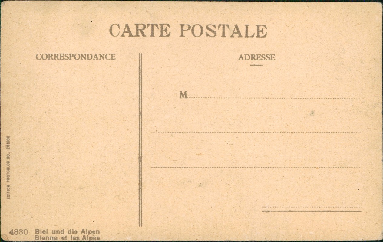 Postcart: Stadt mit Beschreibung der Alpengipfel - Bienne
