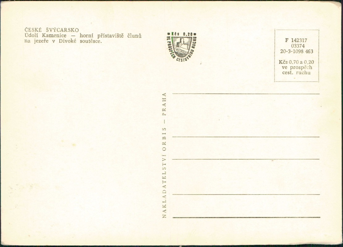 Postcart: Údolí Kamenice - horní přístaviště člunůna jezeře v Divoké soutěsce. - .Tschechien