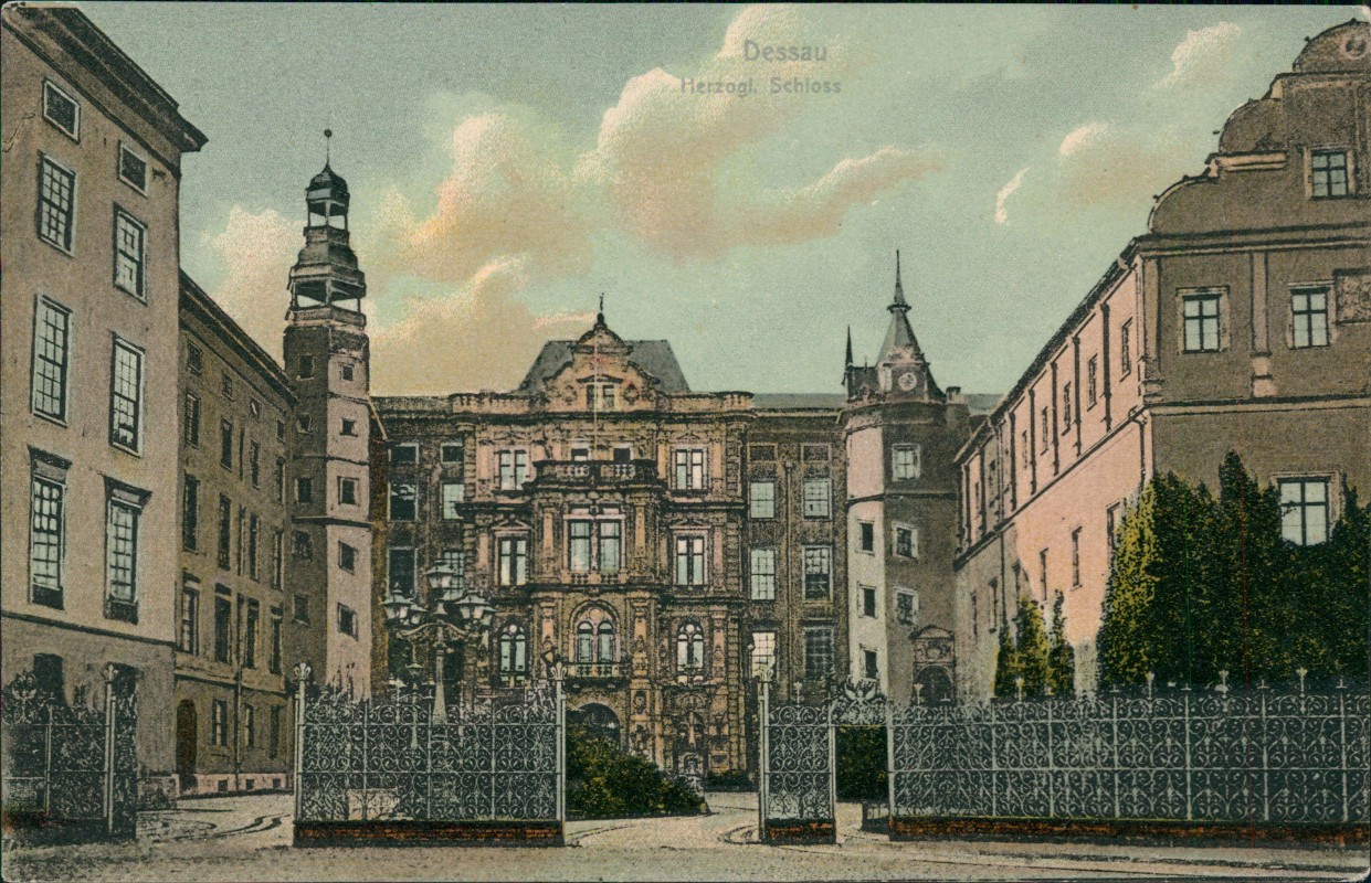 Postcart: Herzogliches Schloss Eingang - Dessau-Dessau-Roßlau
