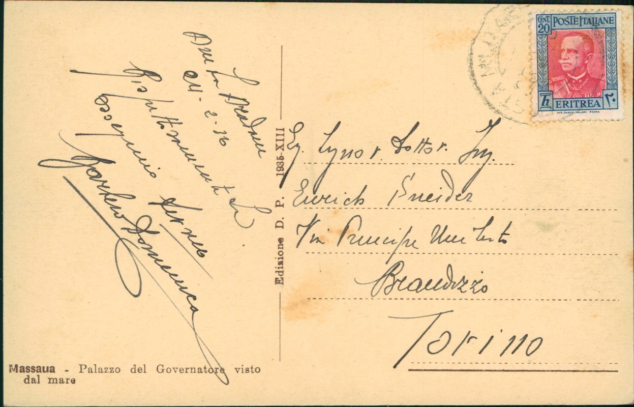 Postcart: Palazzo del Governatore vistodal mare - Massawa