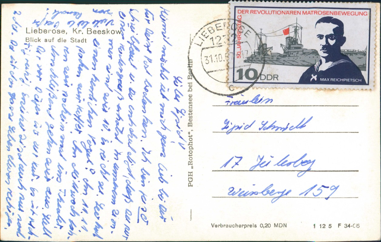 Postcart: Blick über die Stadt - Fotokarte - Lieberose