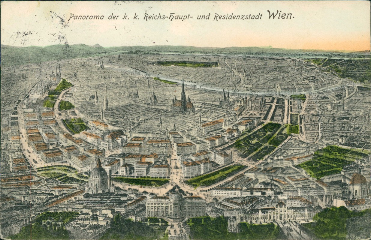 Postcart: aus der Vogelschau - Künstlerkarte - Vienna