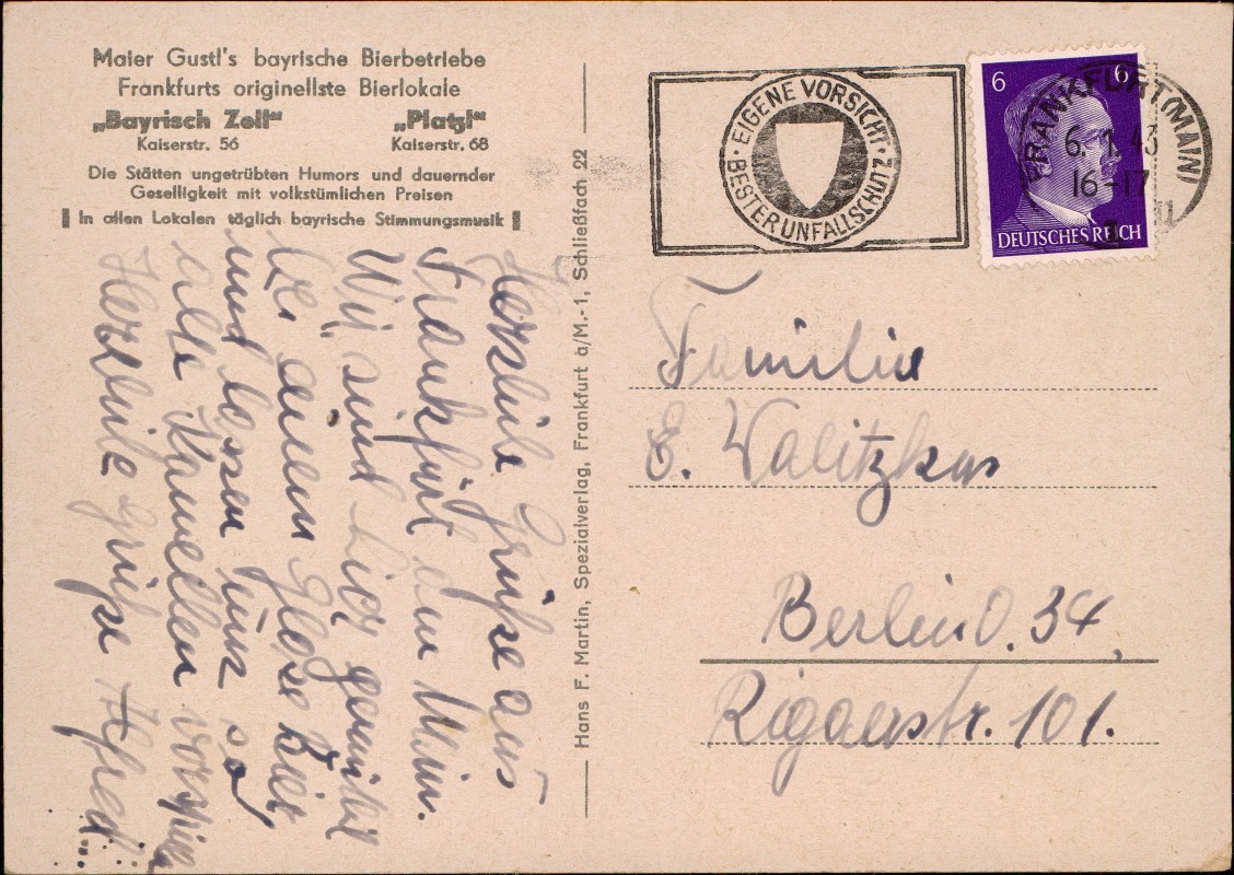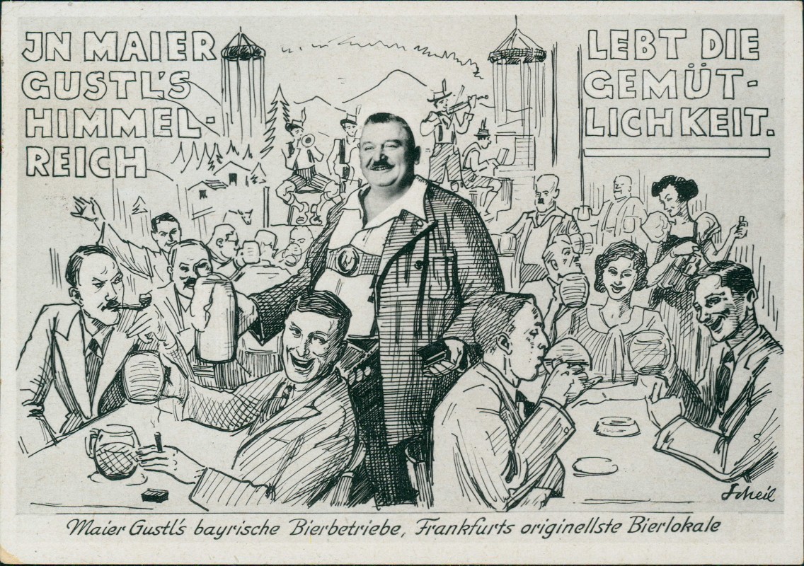 Postcart: Werbekarte Maier Gustl's bayrische Bierbetriebe - Frankfurt am Main