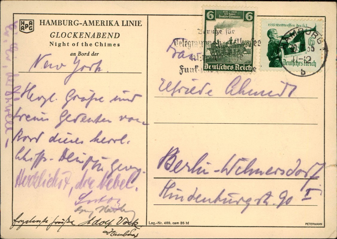 Postcart: Reklame Werbung Night of the Chimesan HAPAG HH-Amerika Linie