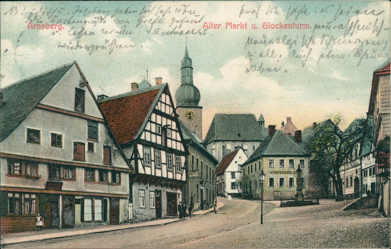 Postcart: Alter Markt u. Glockenturm - Wirtshaus - Arnsberg
