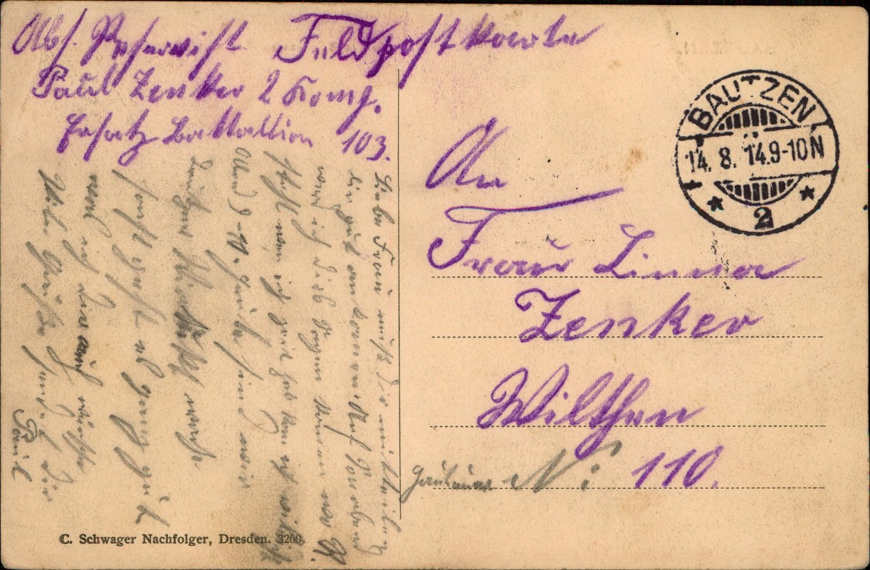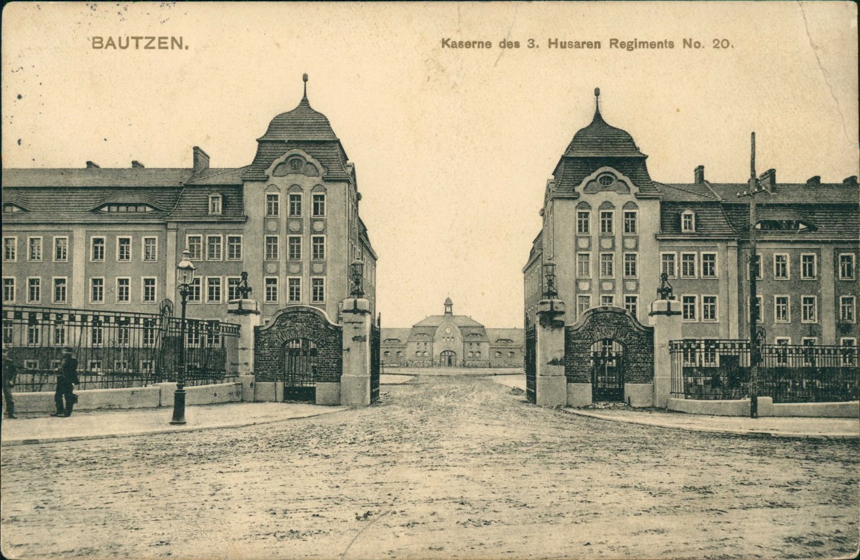 Postcart: Kaserne des 3. Husaren Regiments No. 20. - Bautzen