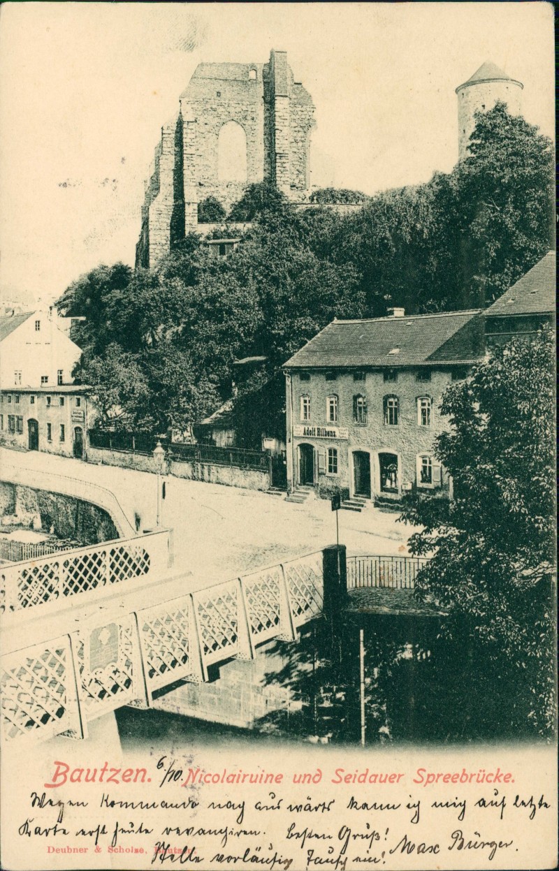 Postcart: Nicolairuine und Seidauer Spreebrücke - Bautzen