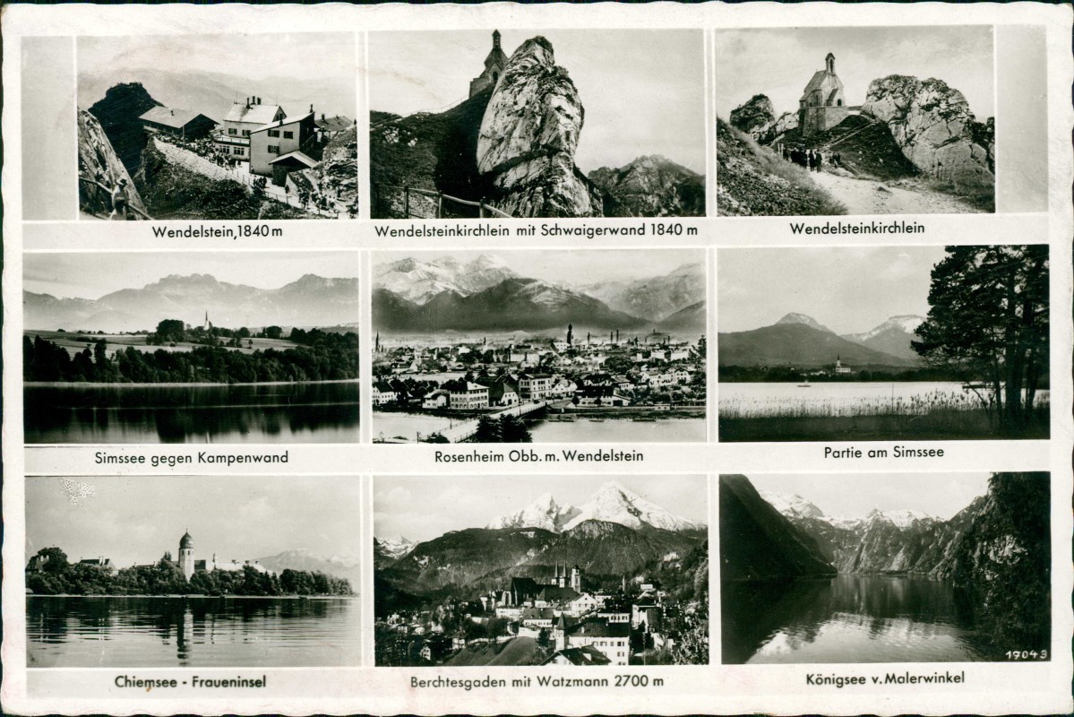 Postcart: Mehrbild Wendelstein Berchtesgaden Chiemsee Simssee - .Bayern