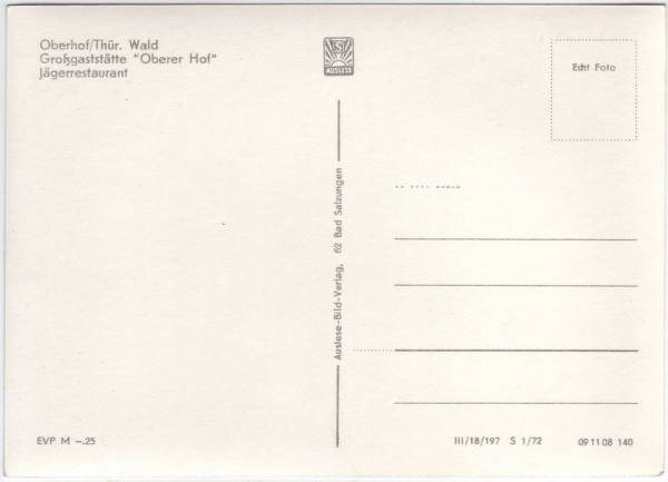 Photo Card: Großgaststätte "Oberer Hof": Jägerrestaurant - Oberhof (Thüringen)