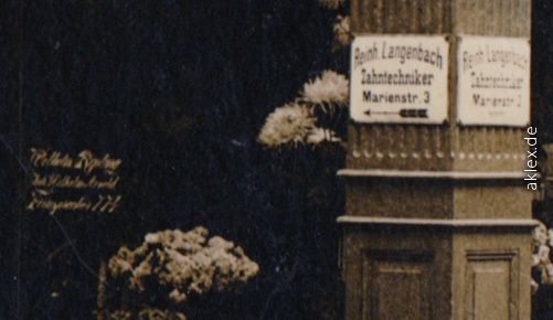 - Blumenladen Schild: Reinh. Langenbach Zahntechniker Marienstr. 3