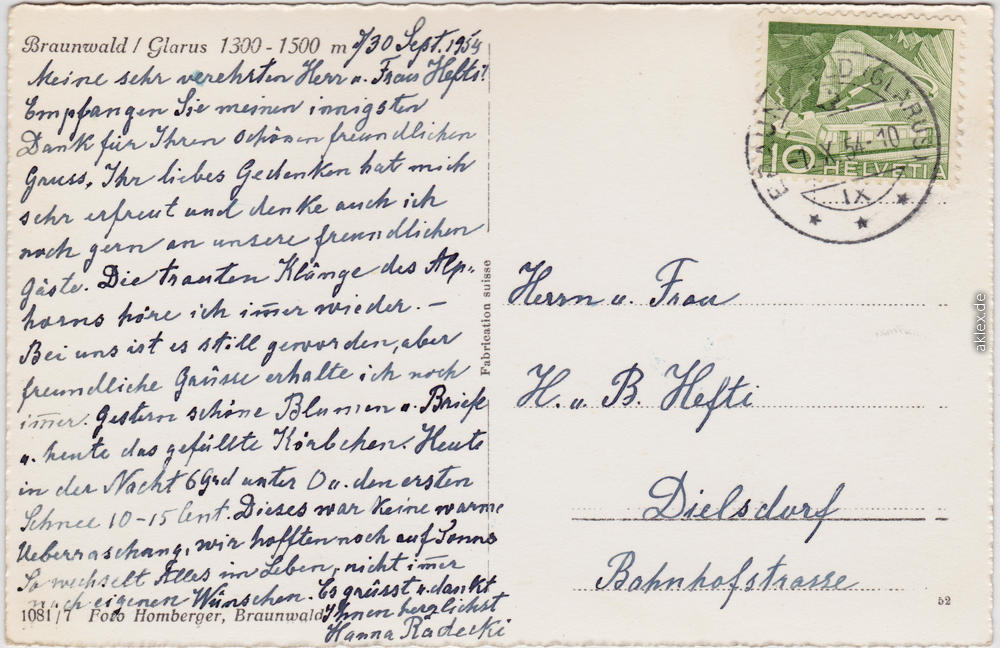 Photo Card: Blick auf die Stadt - Braunwald GL
