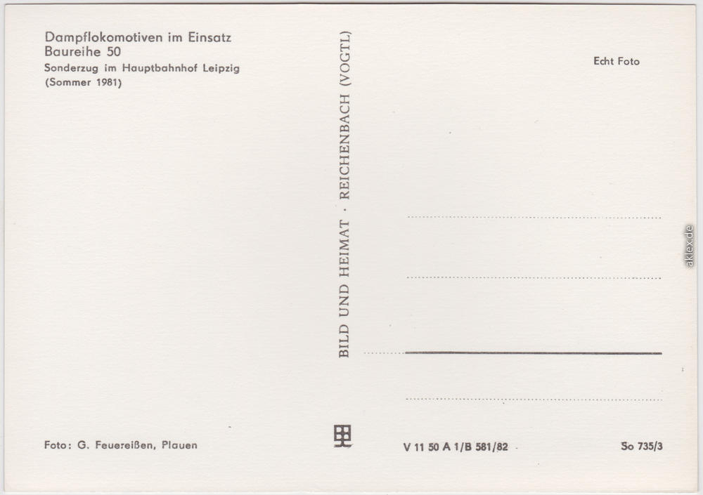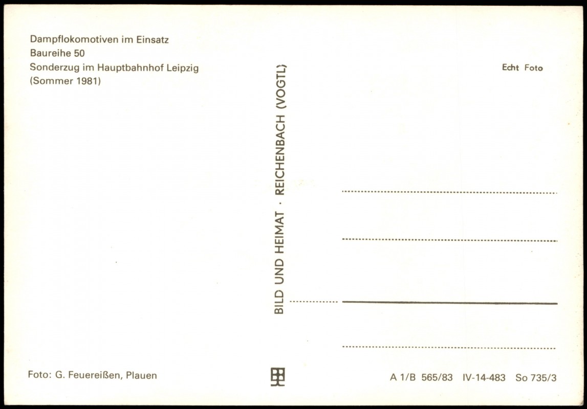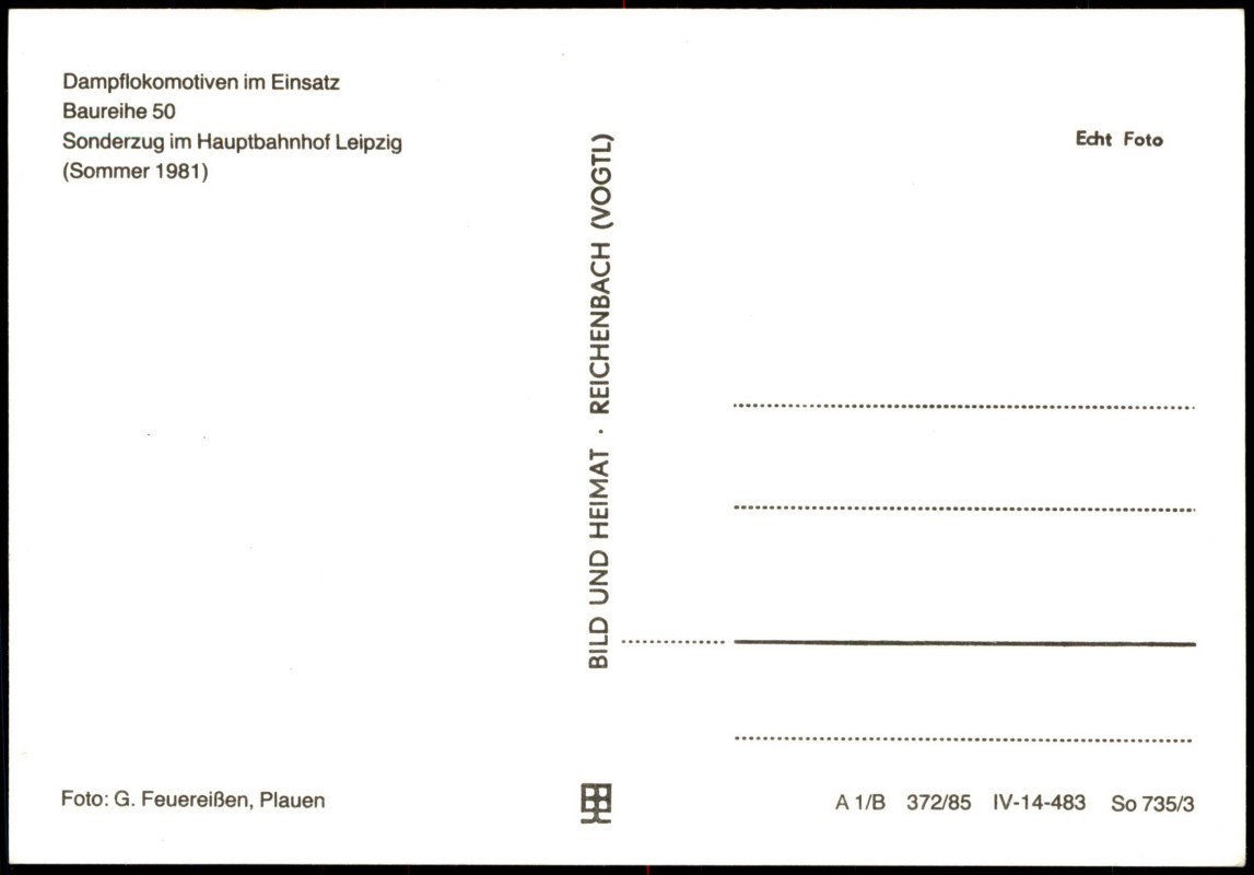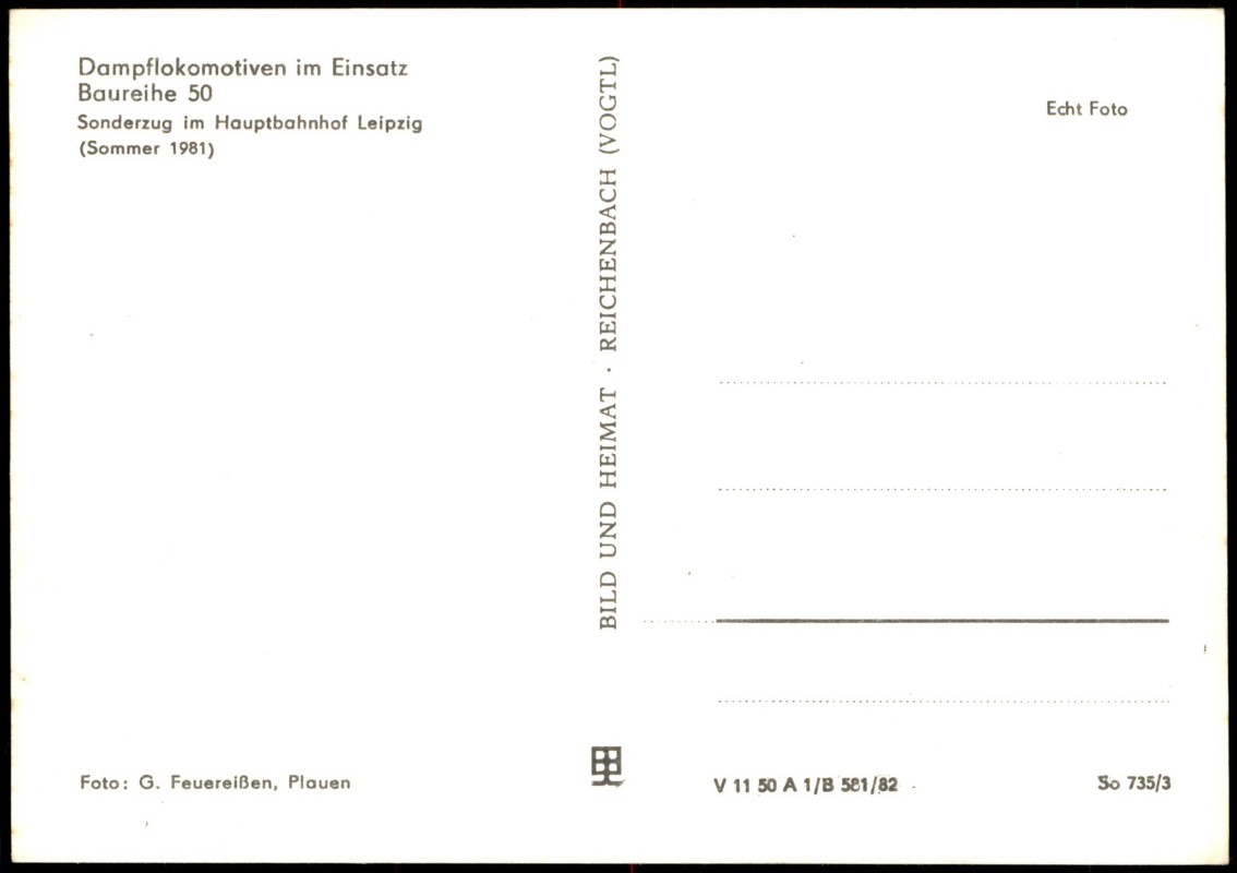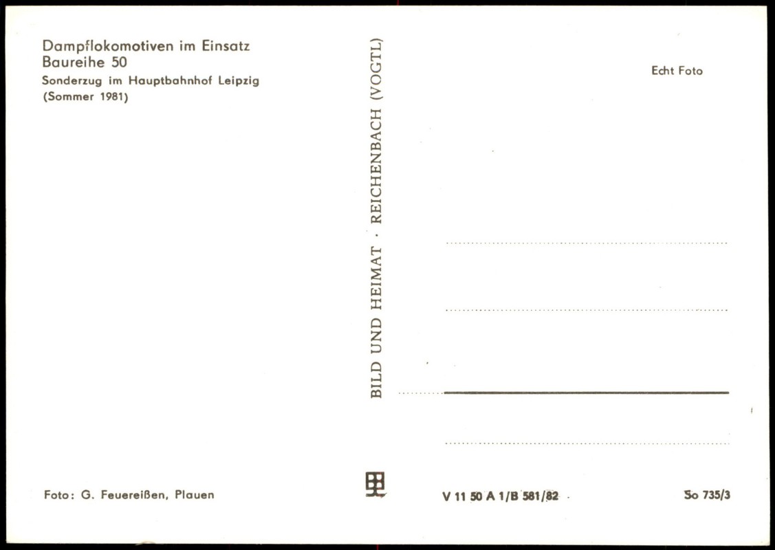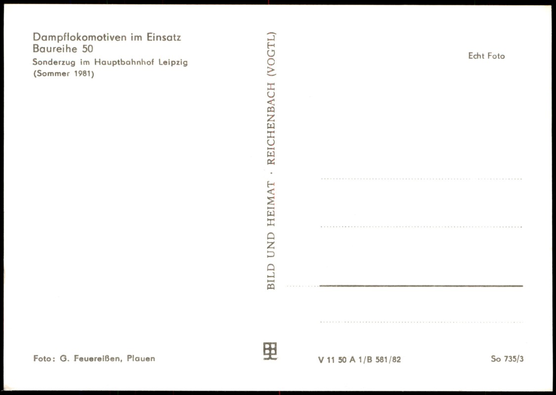 Photo Card: Dampflokomotive Baureihe 50 - Hauptbahnhof