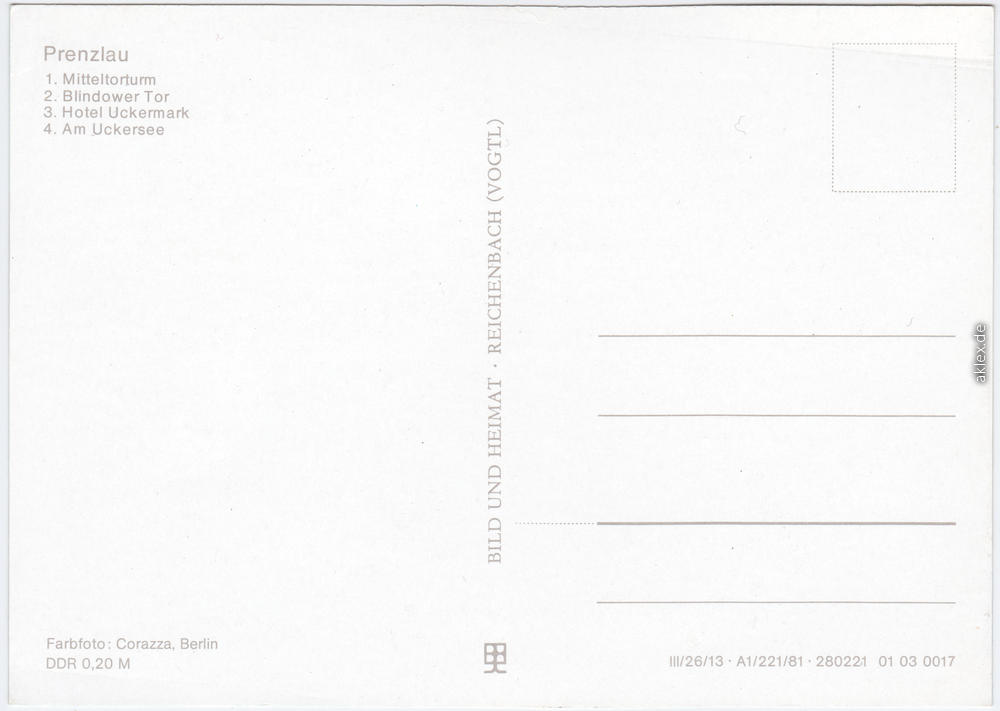 - Ansichten: Mitteltorturm, Blindower Tor, Hotel, Am Uckersee