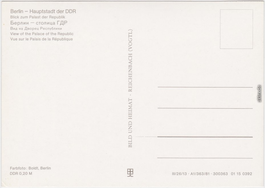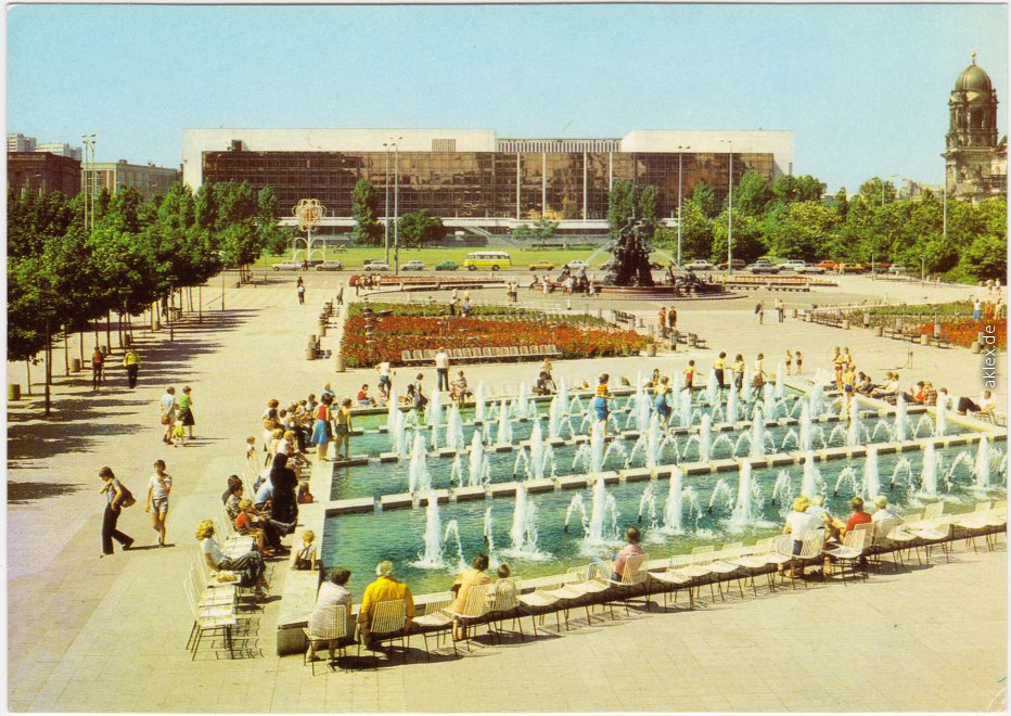 Postcart: Blick zum Palast der Republik über Springbrunnen-anlage - Mitte-Berlin