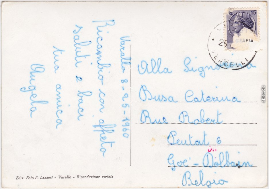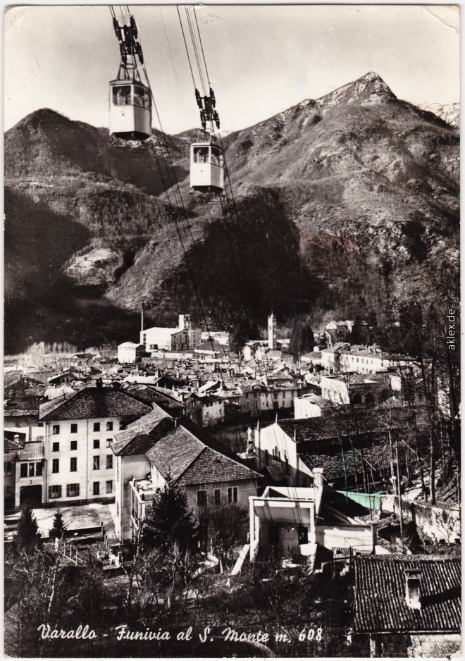 Postcart: Sicht auf 2 Gondeln und die Stadt - Varallo