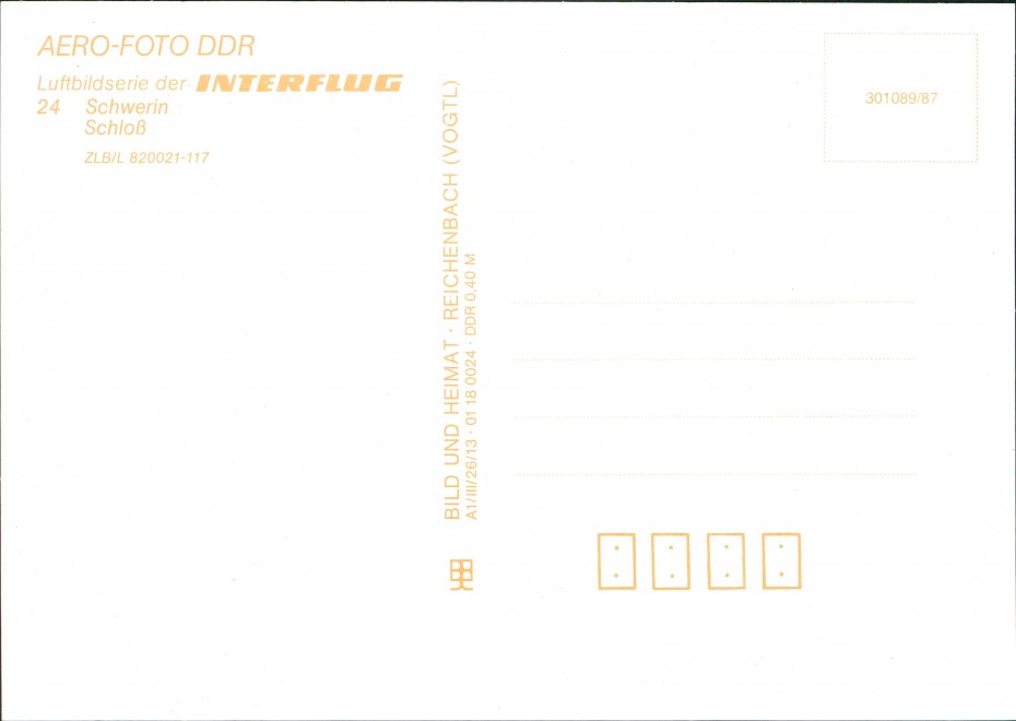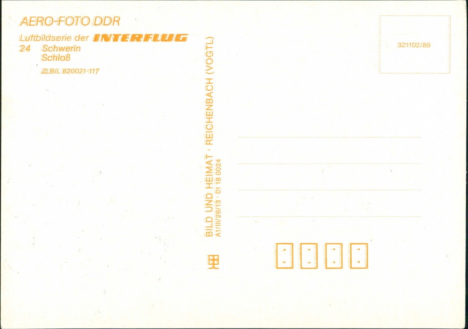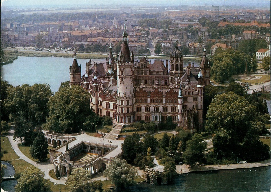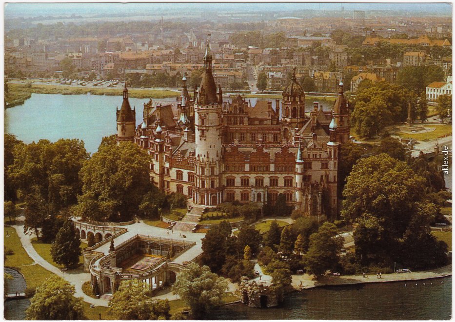 Postcart: Luftbild Schloß - Interflug - Schwerin