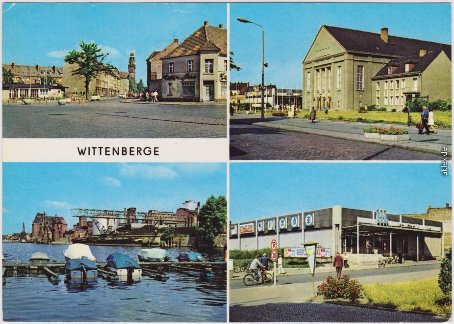 Postcart: Am Stern, Kulturhaus, Hafen, HO-Kaufhalle - Wittenberge