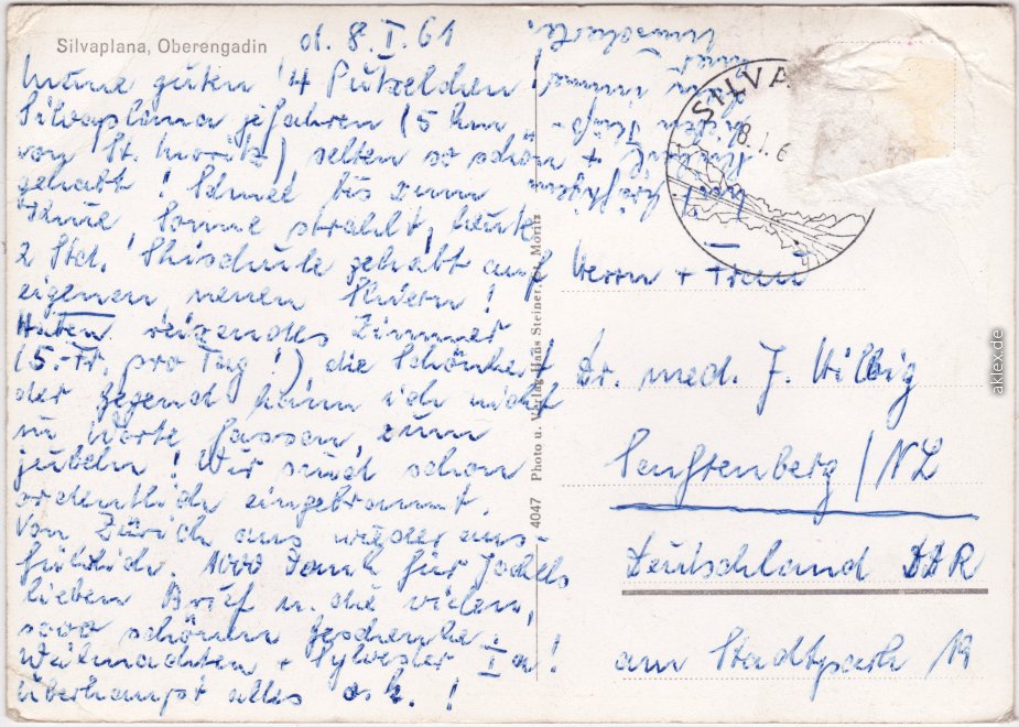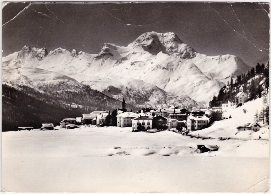 Photo Card: Sicht auf die Stadt und dem Bergmassiv im winterlichem Gewand - Silvaplauna