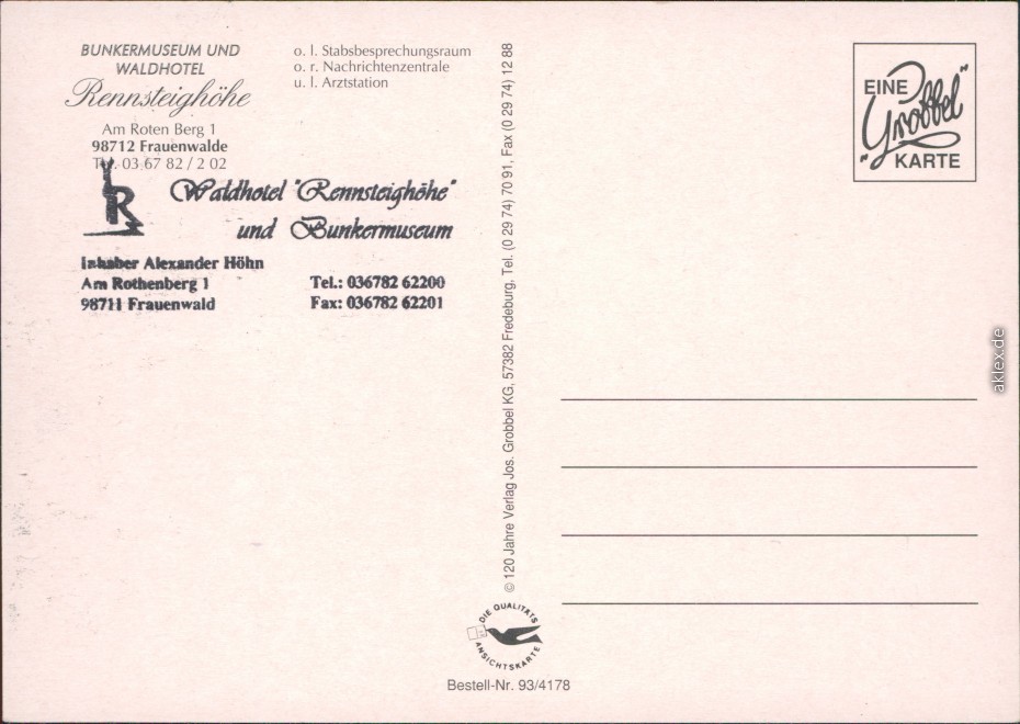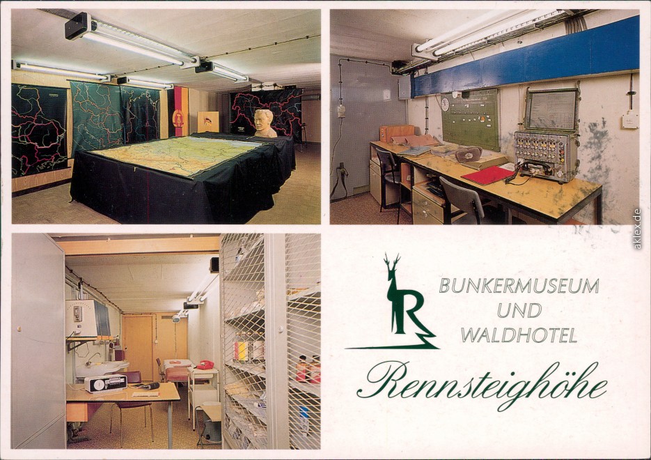 Postcart: Bunker-Innenraum - Kartenraum, Funkraum, Krankenzimmer - Frauenwald Rennsteig