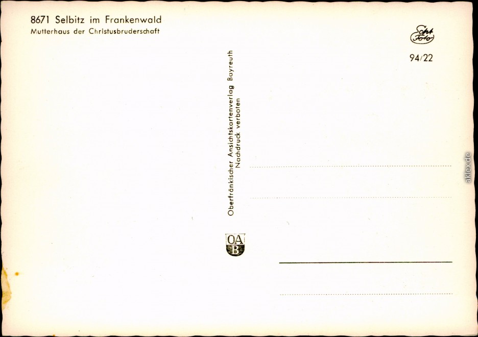 - Oberfränkischer Ansichtskartenverlag Bayreuth (OAB)