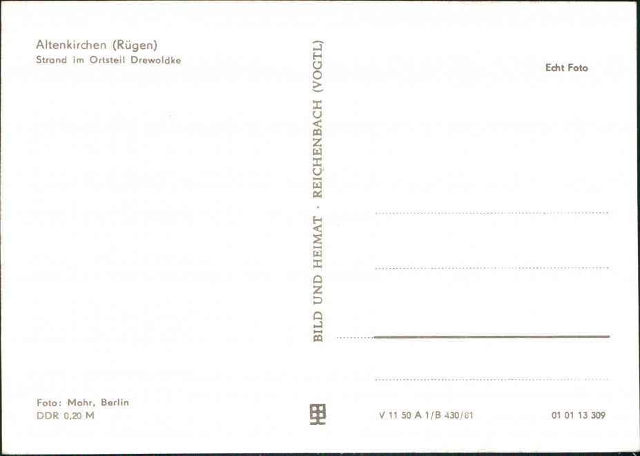 Postcart: Strand mit Strandkörben und Gästen im Ortsteil Drewoldke - Altenkirchen (Rügen)