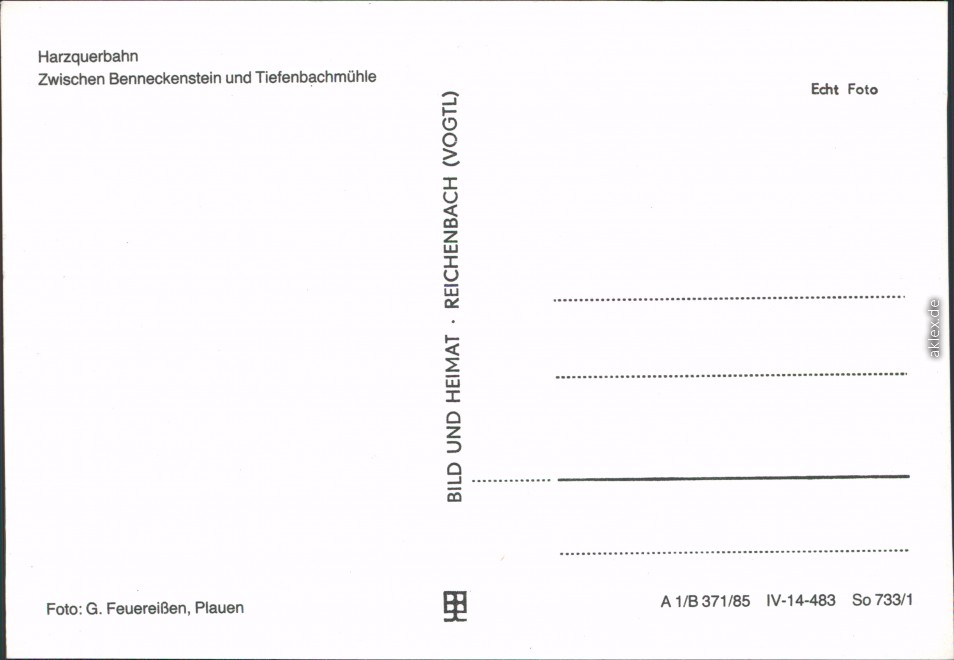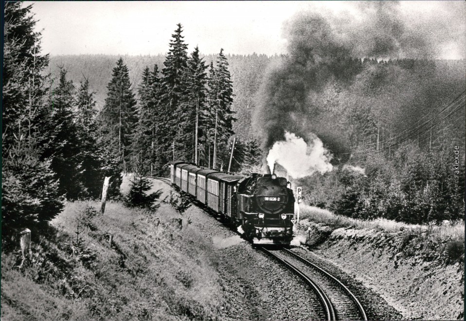 Postcart: Harzquerbahn - Dampflokomotive zwischen Benneckenstein und Tiefenbachmühle