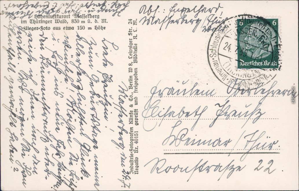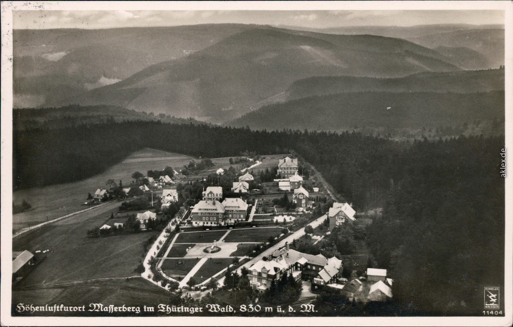 Postcart: Luftbild aus etwa 150 m höhe auf den Kurort - Masserberg