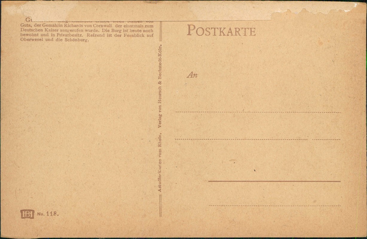 - Gutenfels. Burg Gutenfels erhielt ihren Namen von Guta, der Gemahlin Richards von Cornwall, der einstmals zum Deutschen Kaiser ausgerufen wurde. Die Burg ist heute noch bewohnt und in Privatbesitz. Reizend ist der Fernblick auf Oberwesel und die Schönburg.