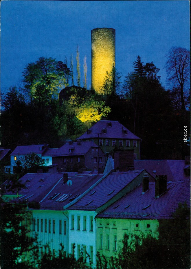 Postcart: Stadtpartie - illuminierter Turm - Bad Lobenstein