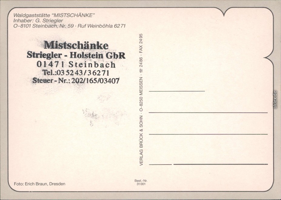 Postcart: Waldgaststätte "Mistschänke" - Moritzburg