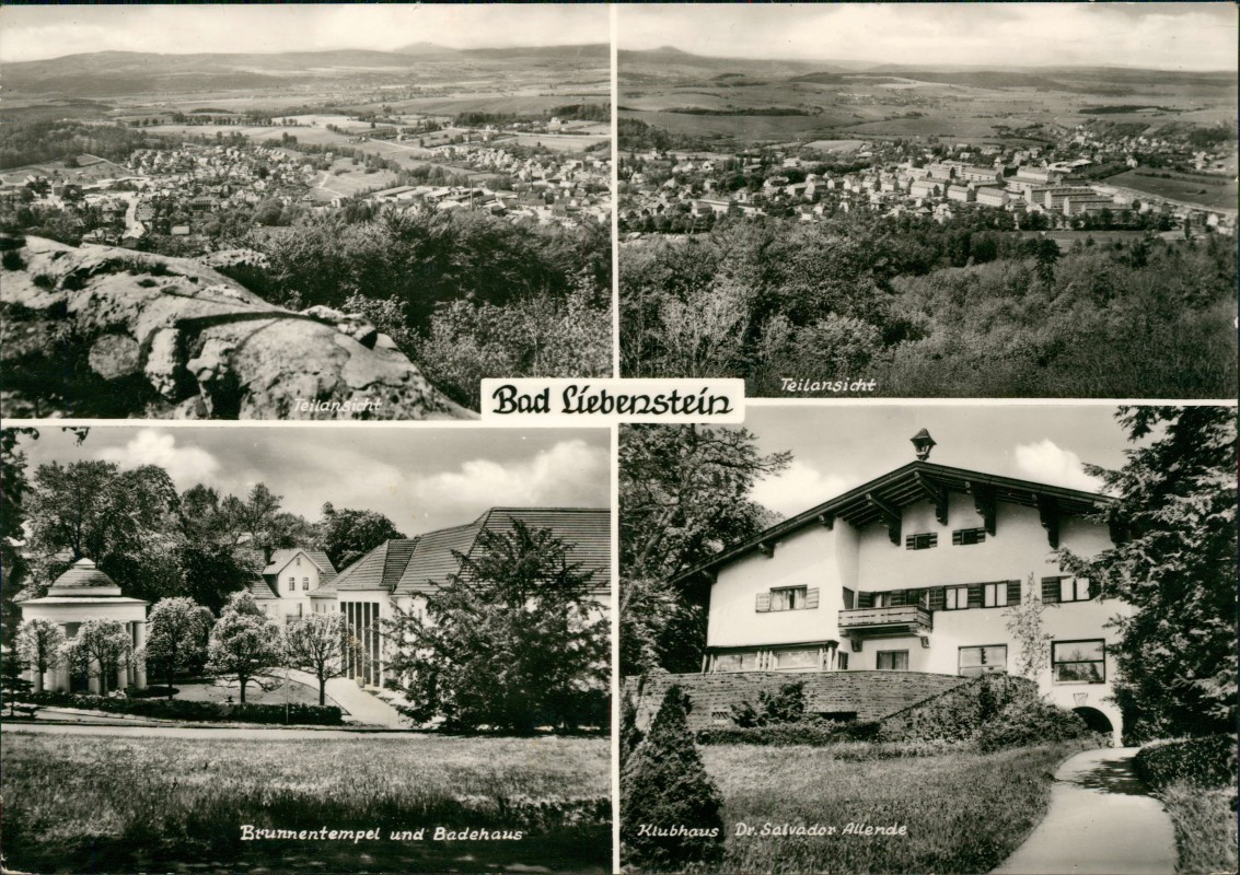 Postcart: Teilansicht, Brunnentempel und Badehaus, Klubhaus Dr. Salvador Allende - Bad Liebenstein