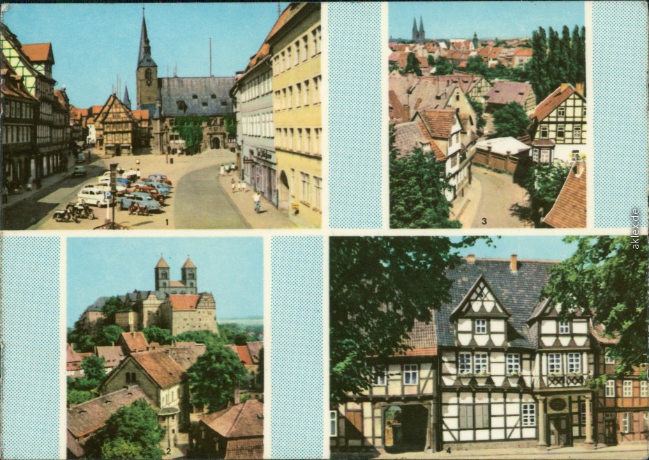Postcart: Markt, Panorama-Ansicht, Teilansicht, Klopstockhaus - Quedlinburg
